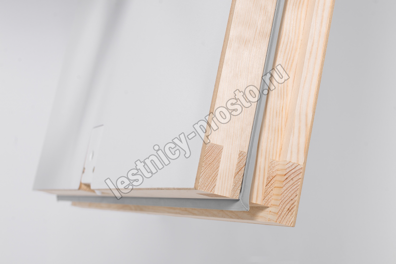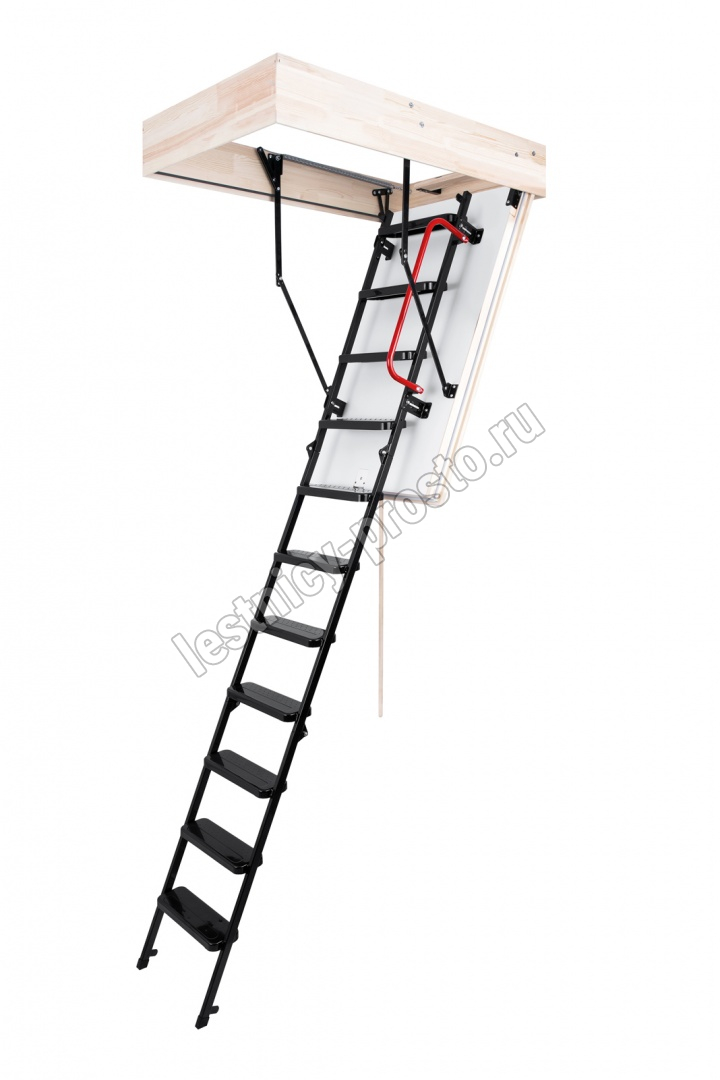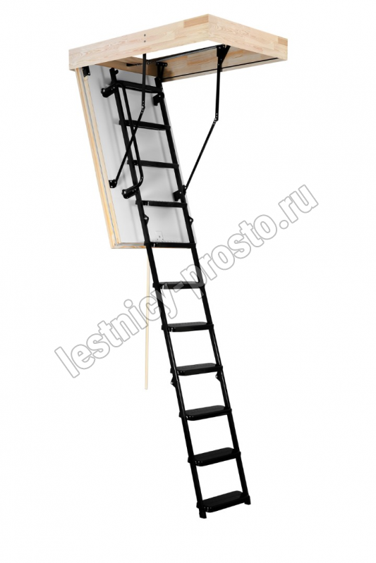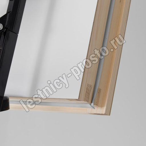 Лестница складная трехсекционная. Рабочая поверхность полностью выполнена из металла и покрашена порошковой краской. Термоизоляционная крышка типа "сэндвич", толщиной 86 мм, утеплена пенопластом, облицована с двух сторон ДCП белого цвета.