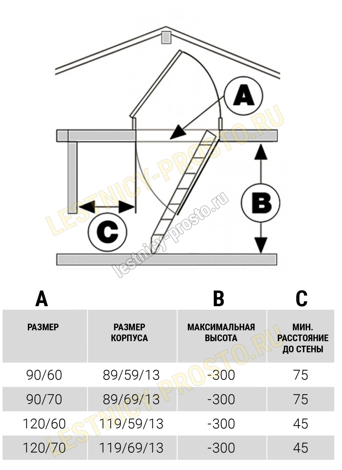 Чердачная ножничная лестница MINKA ELEGANCE 60×120 см, h-300 см