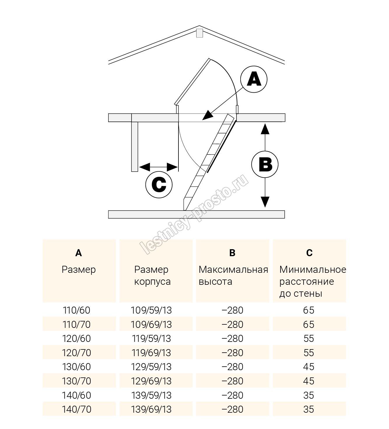 Высота лестницы 2200 - 2800 мм