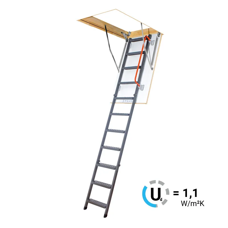 Все элементы лестницы выполнены из экологически чистых материалов и обработаны веществами, не содержащими тяжелых металлов. На ступенях антискользящие насечки. Короб лестницы изготовлен из металла. Термоизоляционная крышка типа "сэндвич" утеплена пенопластом, облицована с двух сторон ДСП белого цвета. Короб люка с уплотнителем. В комплекте деревянный стержень для открывания лестницы.