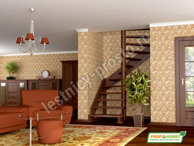 Базовый комплект включает в себя деревянные элементы лестницы без какого-либо покрытия.
