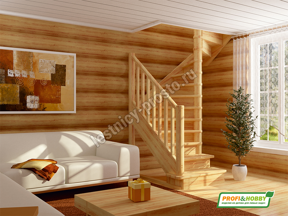 Ступени и поручень лестницы изготовлены из дуба, остальные элементы из сосны.
