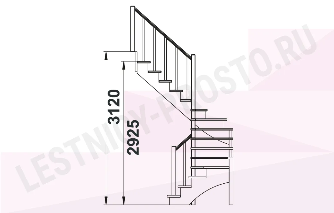 Лестница К-003М/4 с поворотом налево