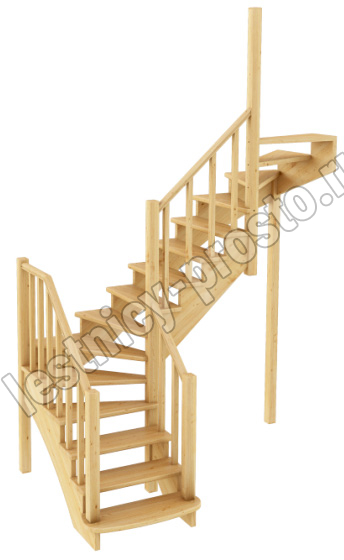 Базовый комплект включает в себя деревянные элементы лестницы и ограждения без какого-либо покрытия.
