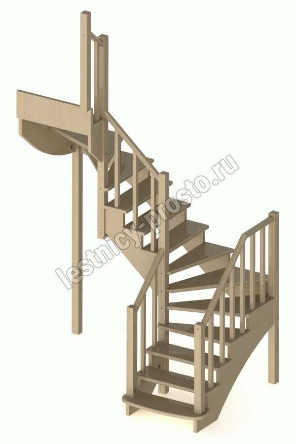 Базовый комплект включает в себя деревянные элементы лестницы и ограждения без какого-либо покрытия.