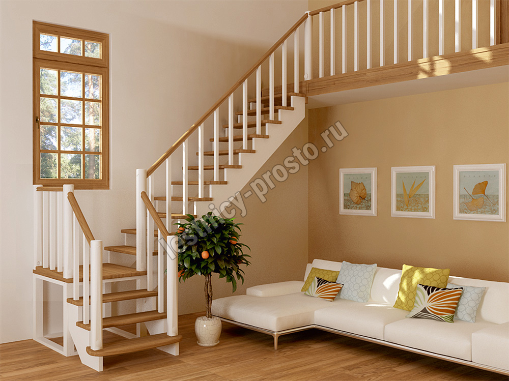 Базовый комплект включает в себя деревянные элементы лестницы и ограждения без какого-либо покрытия.