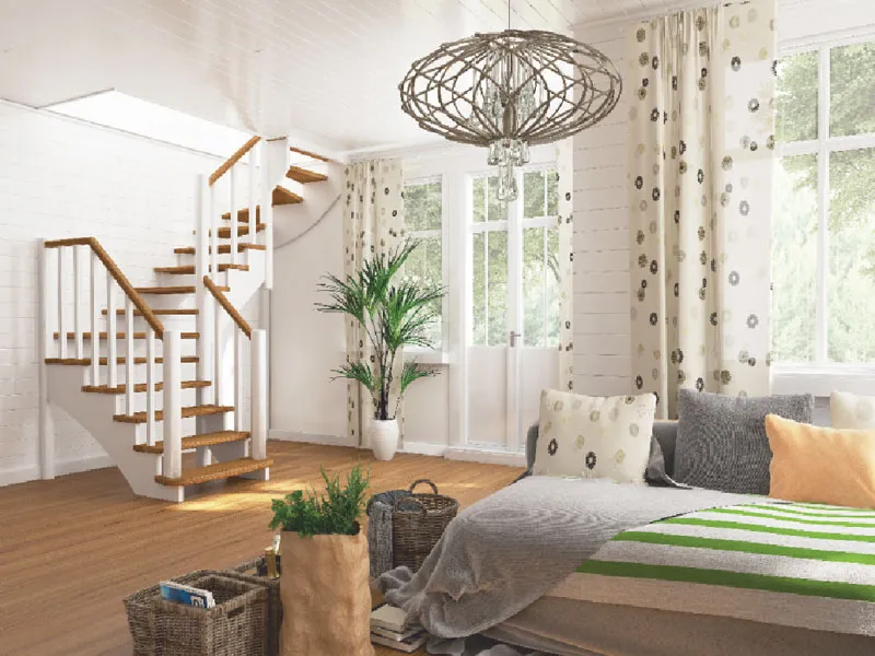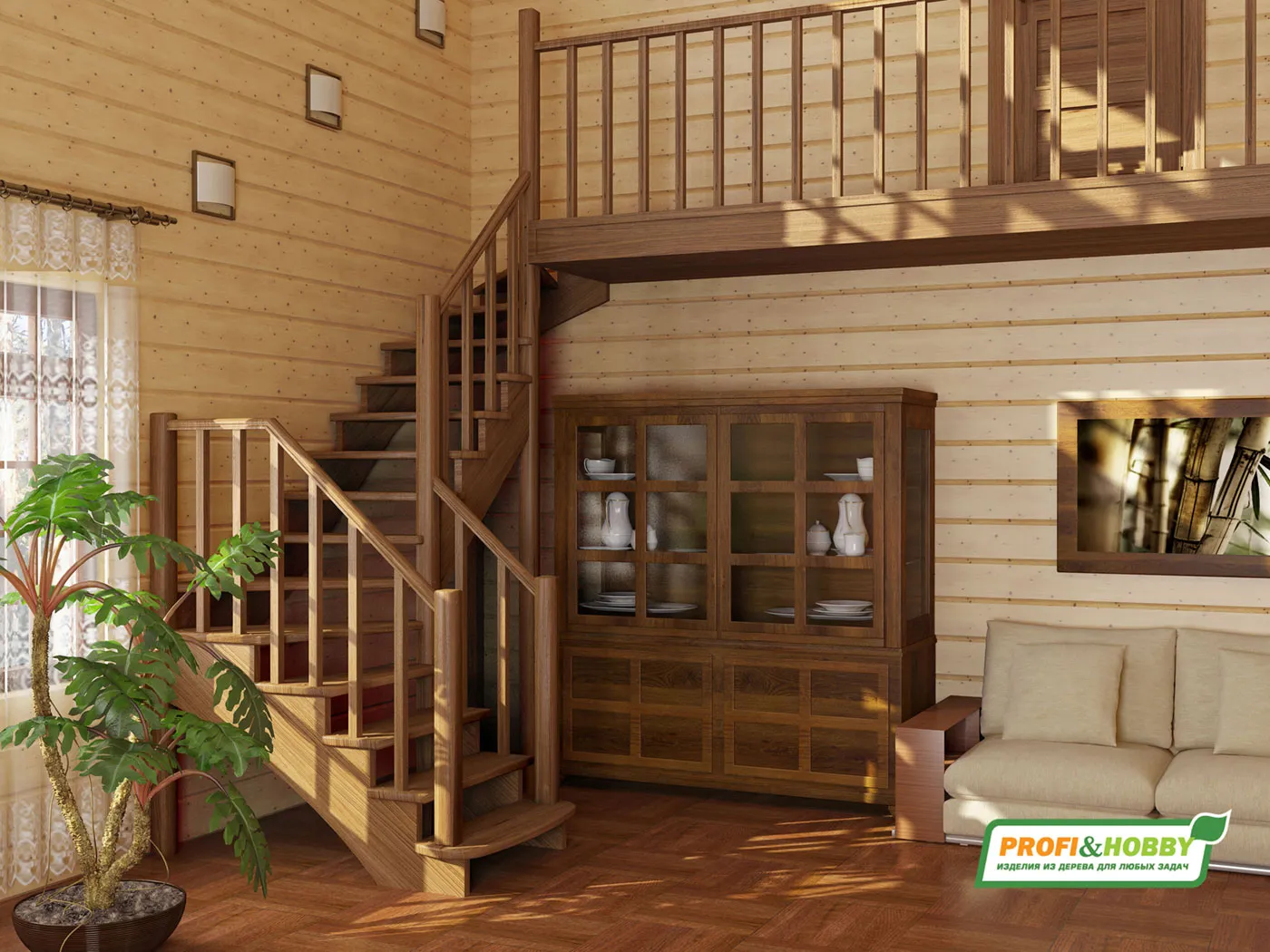 Ступени и поручень лестницы изготовлены из ясеня, остальные элементы из сосны.