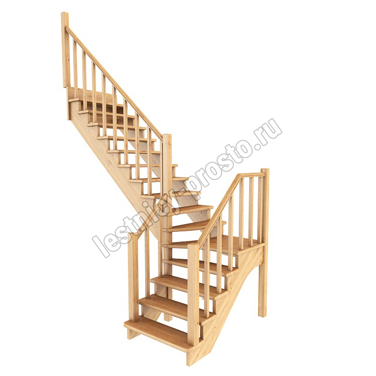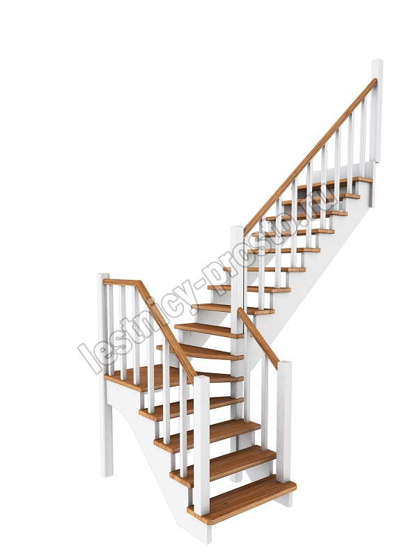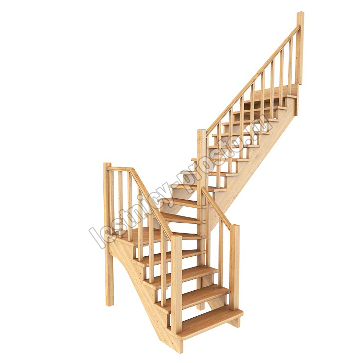 Ступени и поручень лестницы изготовлены из дуба, остальные элементы из сосны. Возможно изготовление данной модели полностью из дуба