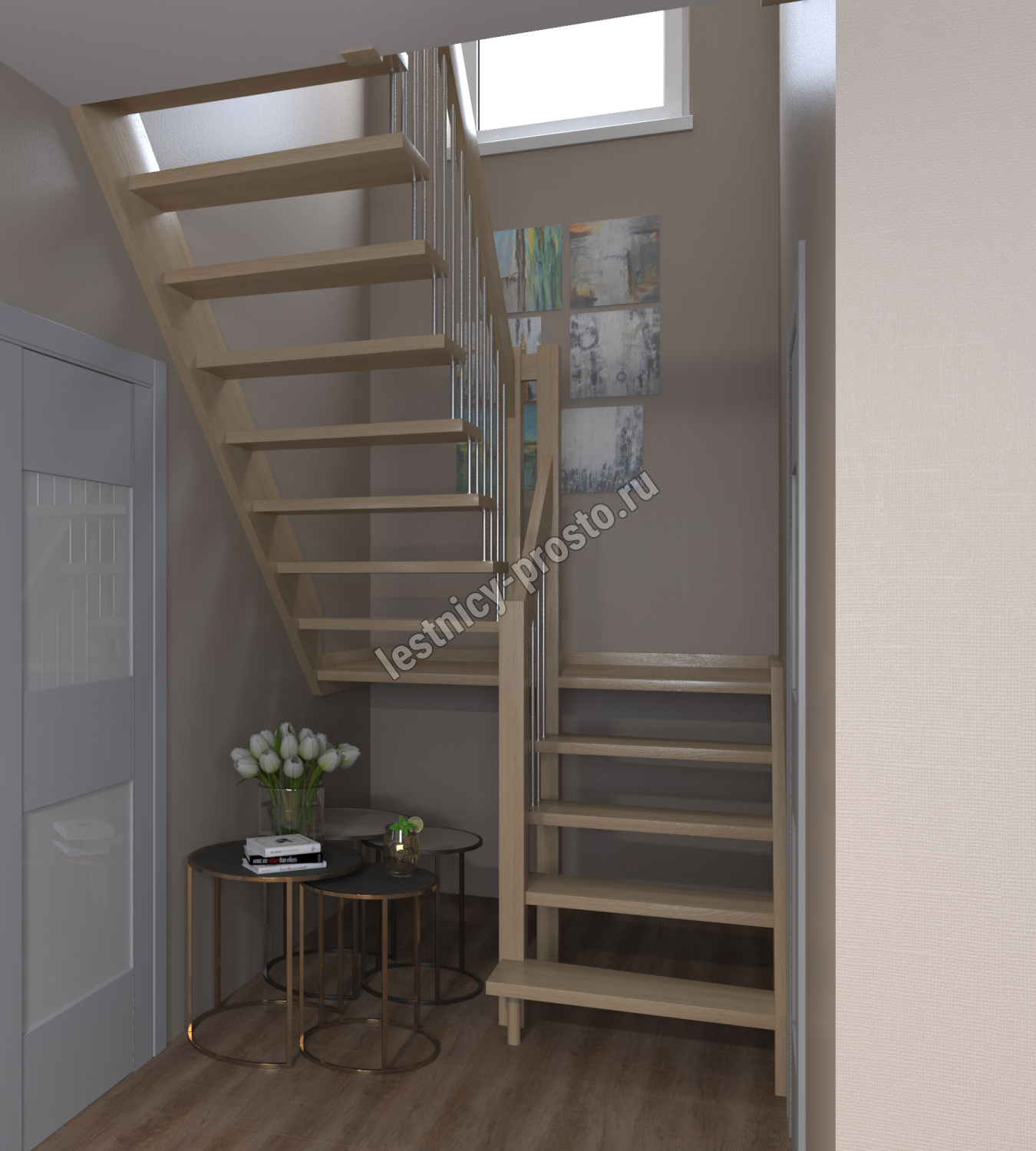 Лестница Prosto Console п-образная забежная, дуб h320 см