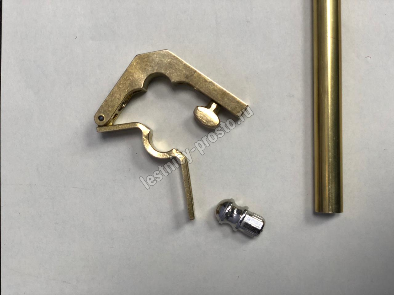 Ковродержатель комплектуется двумя держателями из латуни цвета золото, а также цельным прутком из латуни длиной от 171 до 200 см. Конструкция является сборно-разборной не требующей демонтажа креплений, что делает ее долговечной и очень удобной для чистки ковров и ковровых покрытий.