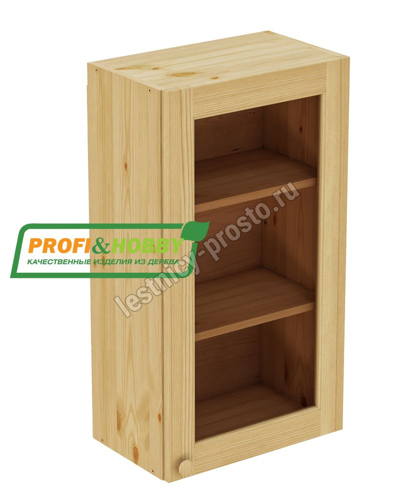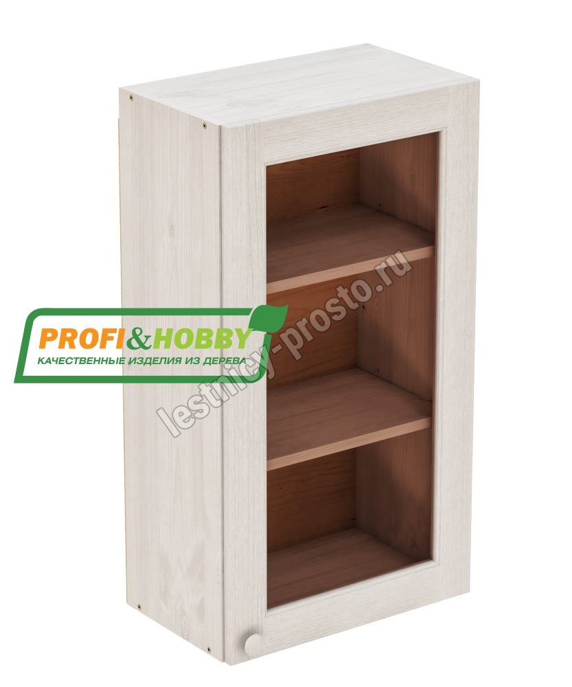 Шкаф навесной изготовлен из 100% массива дерева, без шпона и без МДФ/ДСП.