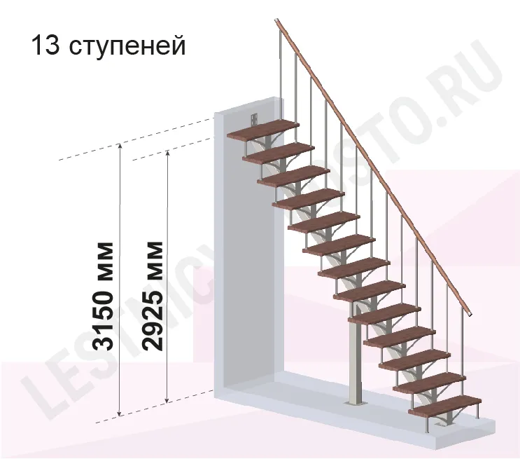 | Лестница PROSTO MONO прямая, h315 см, ступени хвоя |
