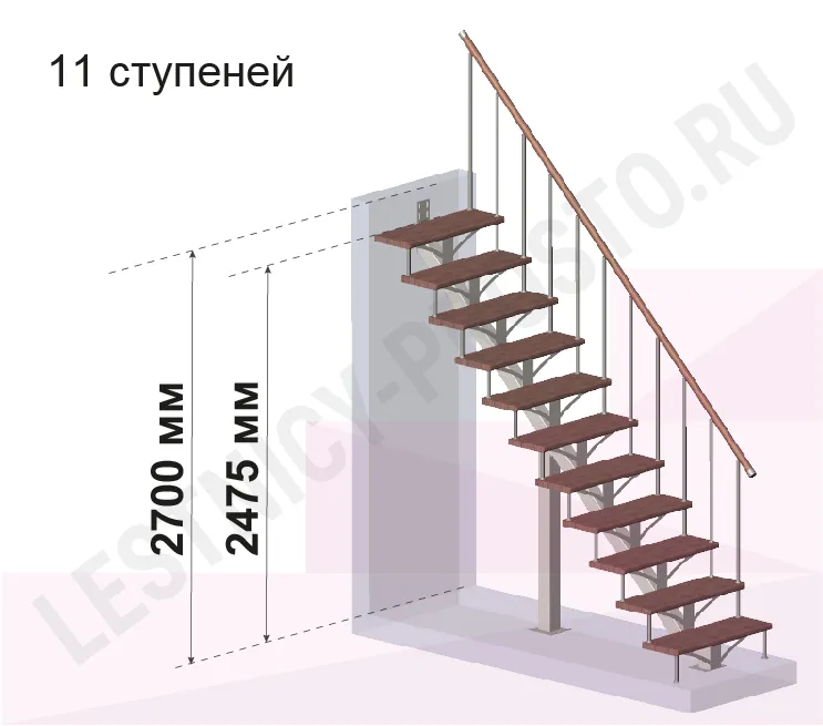 | Лестница PROSTO MONO прямая, h270 см, ступени хвоя |