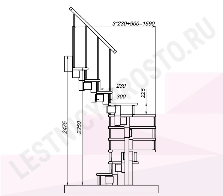Высота лестницы 2250 - 2475 (10 ступеней) мм