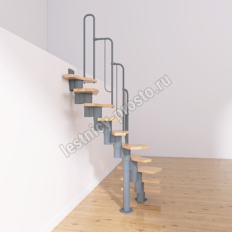 Лестница Prosto Urban Grey г-образная гусиный шаг 600 мм, h180-264 см (10 ступеней)