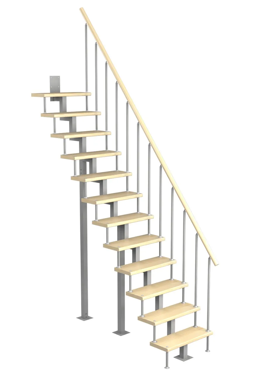 Лестница Prosto Urban White гусиный шаг 600 мм, h234-336 см (13 ступеней), берёза мультиплекс