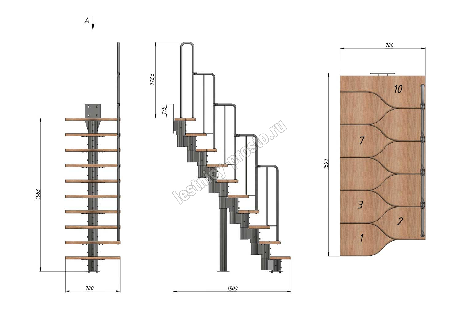 Высота лестницы 1800 - 2640 (10 ступеней) мм