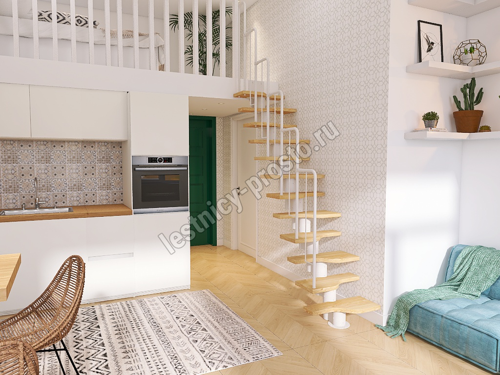 Лестница Prosto Urban White гусиный шаг 700 мм, h180-264 см (10 ступеней) берёза мультиплекс
