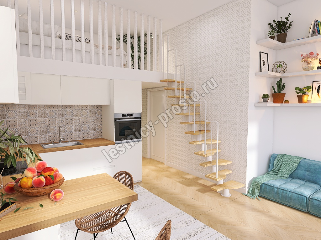 Лестница Prosto Urban White гусиный шаг 700 мм, h198-288 см (11 ступеней), дуб