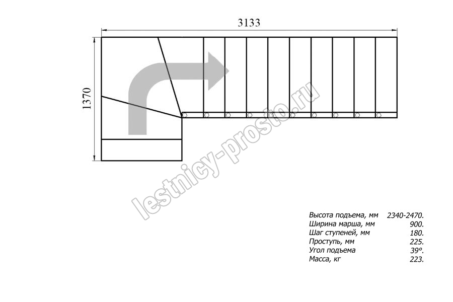 Модульная лестница Фаворит 180 2340-2470, Белый, Лиственница, Нержавеющая сталь