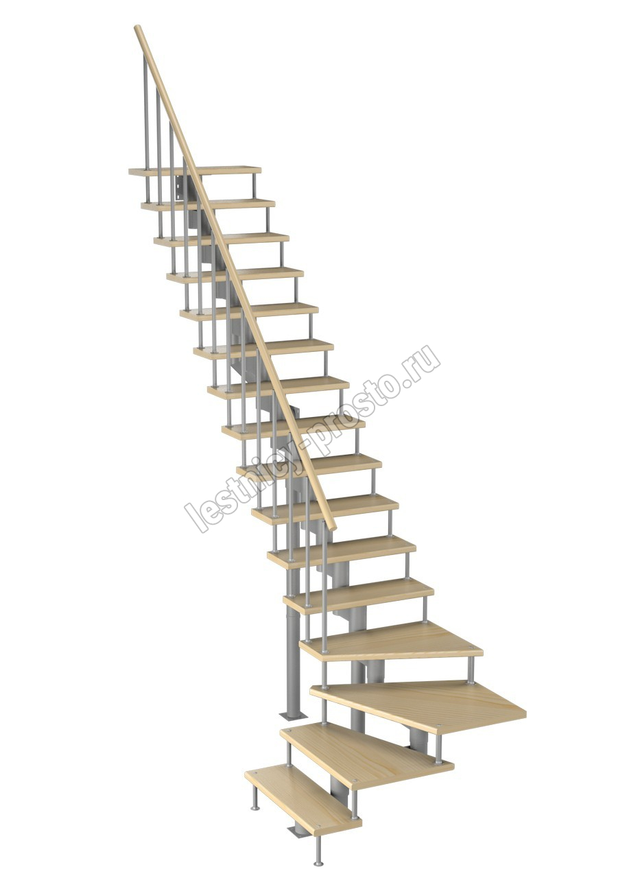 Модульная лестница Фаворит 180 2880-3040, Серый, Сосна, Крашеная