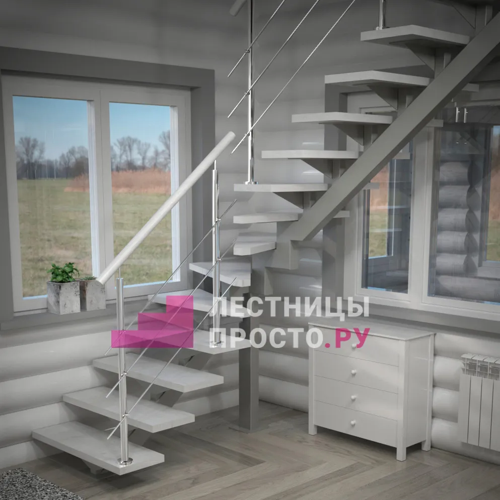 Модульная лестница Фаворит 225 2925-3055, Белый, Сосна, Нержавеющая сталь
