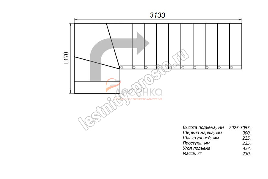 Модульная лестница Фаворит 225 2925-3055, Черный, Бук, Крашеная