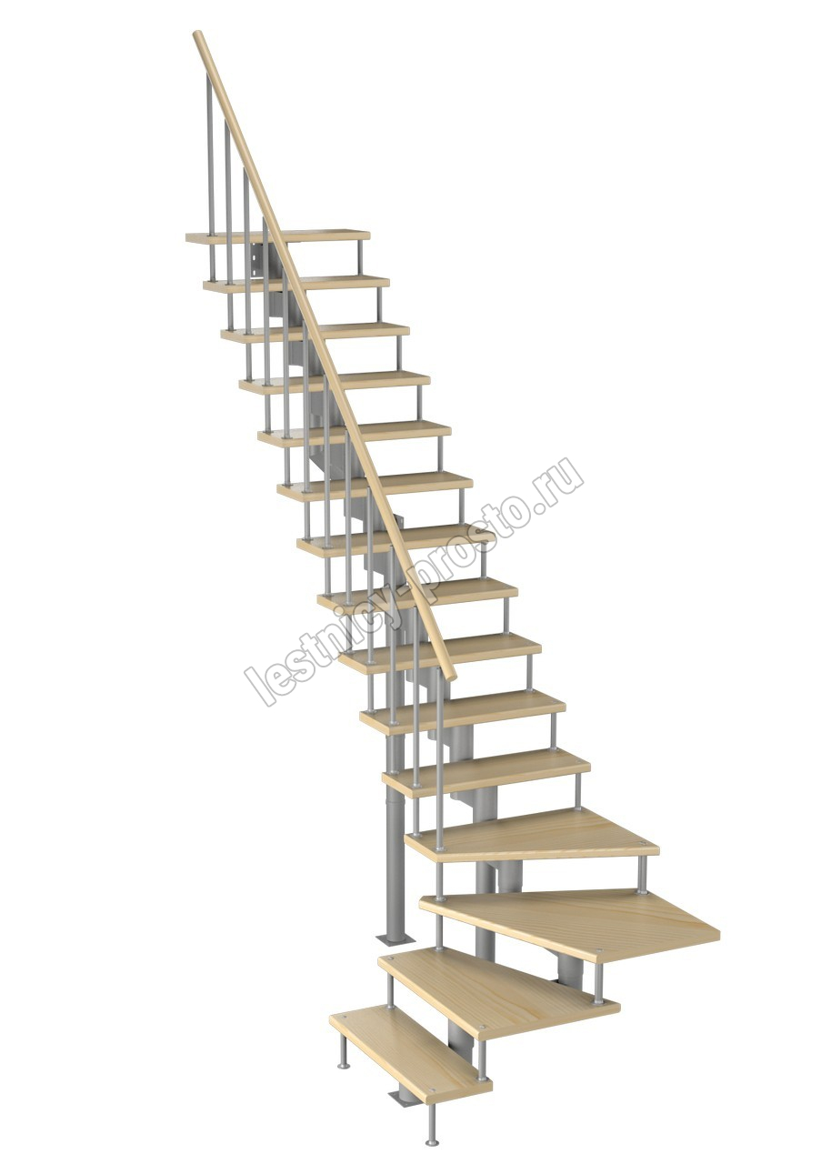 Модульная лестница Фаворит 225 3375-3525, Серый, Сосна, Крашеная, Без Ступений