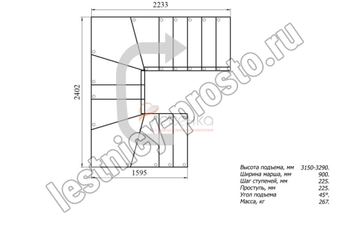Высота лестницы 3150 - 3290 мм