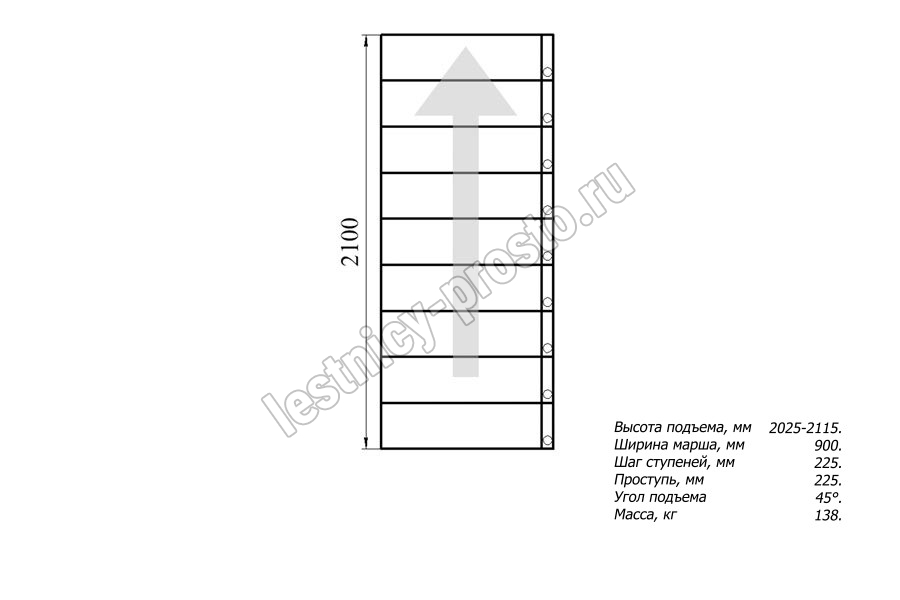 Модульная лестница Стандарт 2025-2115, Серый, Сосна, Крашеная