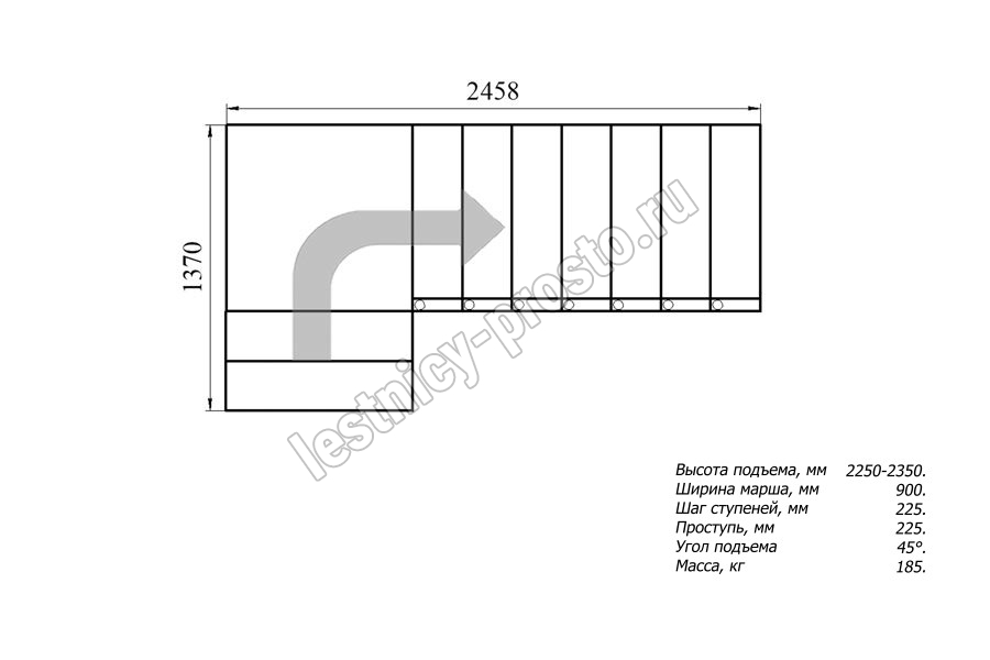Модульная лестница Статус 225 2250-2350, Черный, Сосна, Крашеная, Без Ступений
