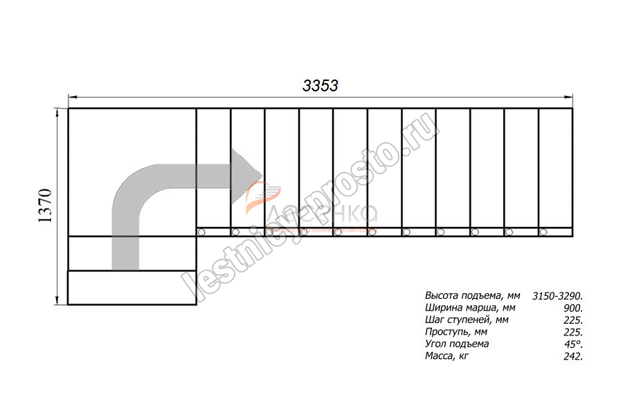 Модульная лестница Статус 225 3150-3290, Черный, Сосна, Крашеная