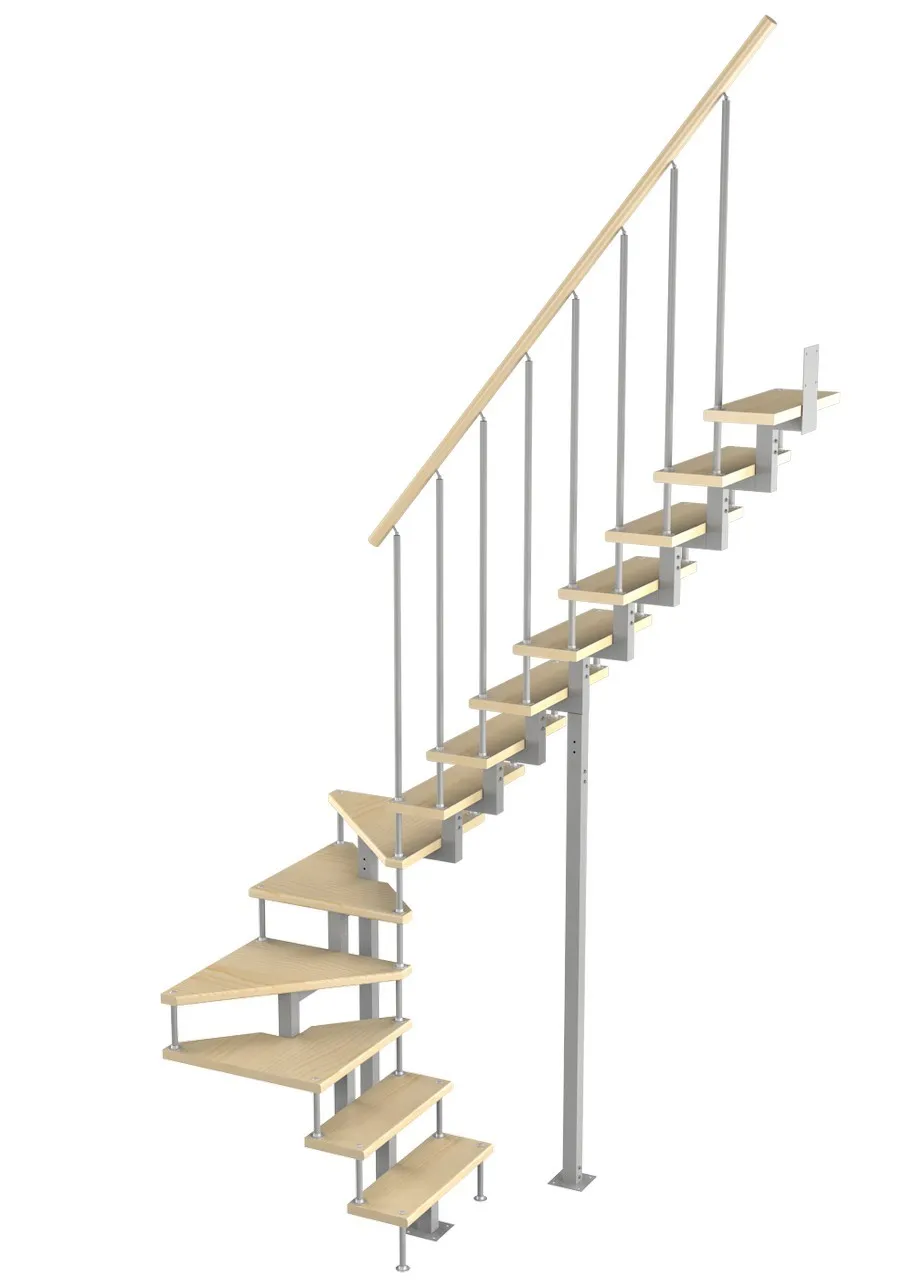 Модульная лестница Статус 225 3150-3290, Серый, Лиственница, Нержавеющая сталь