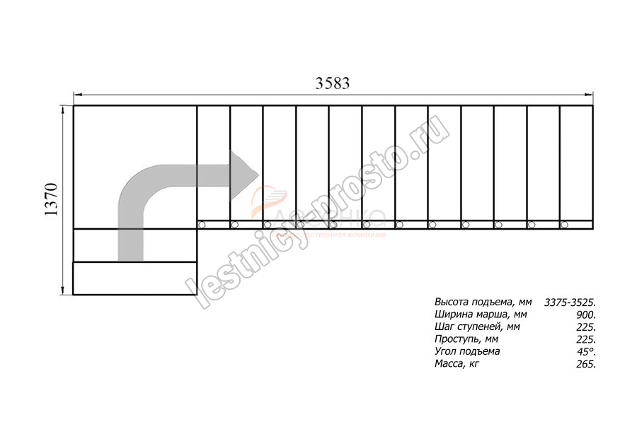 Высота лестницы 3375 - 3525 мм