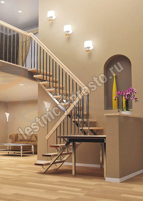 7477c14bb3c72ac208d805860a7a14f6.jpgПромежуточная площадка, при необходимости, может крепиться к стене 4-мя анкер. болтами с 3-х сторон или просто устанавливаться на 4-х опорах из профильной трубы 40х60 L-770 мм. Струны под ступени изготовлены из профильной трубы 40х60 и трубы 20х20 с перемычкой из листа S-3, к которой крепится ступень.