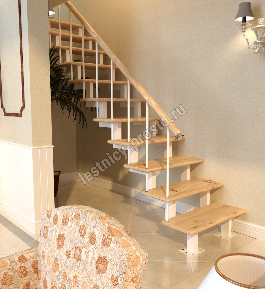 Ступени лестницы выполнены из сращенного бука категории АВ без какого-либо покрытия. Вы можете заказать у нас предварительную профессиональную покраску деревянных элементов лестницы и ограждения в любой цвет.