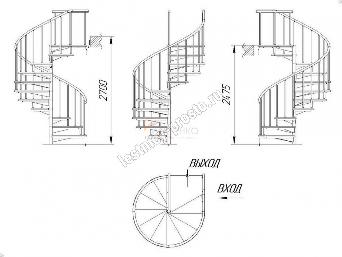 Винтовая лестница ЛЕС-1,8 высота 2475-2700, Черный, Бук