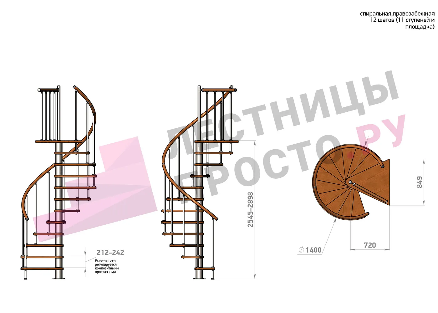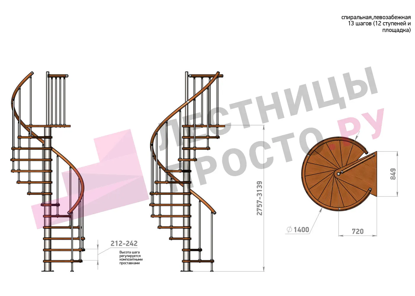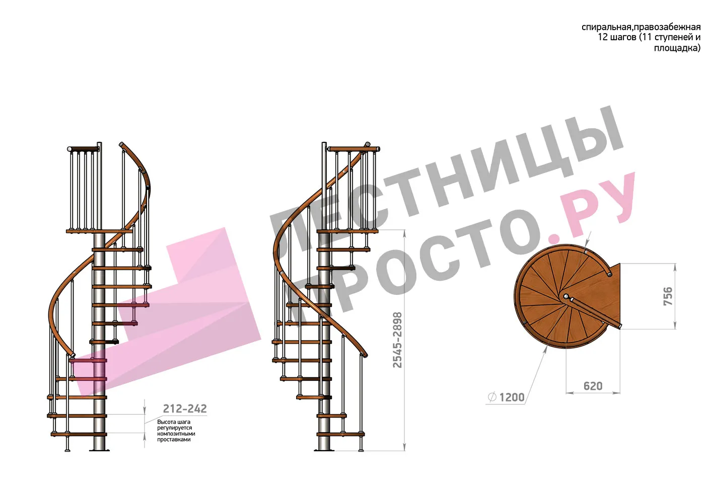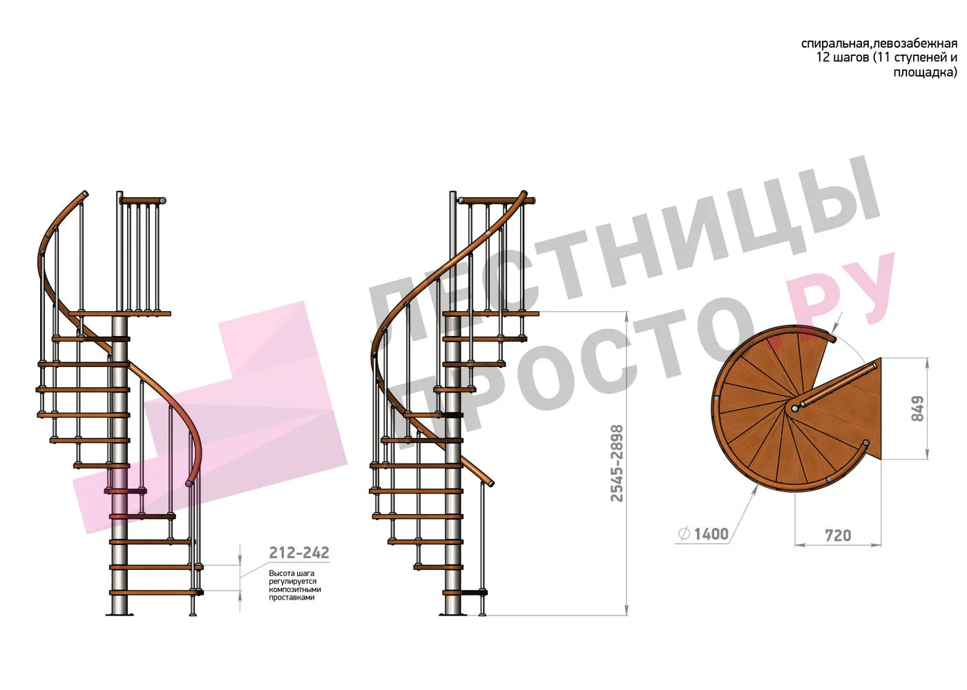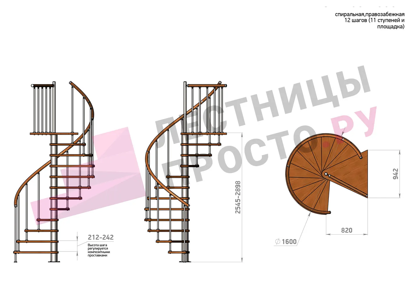 Винтовая лестница Prosto Spiral Black/Высота 2545 - 2898 мм