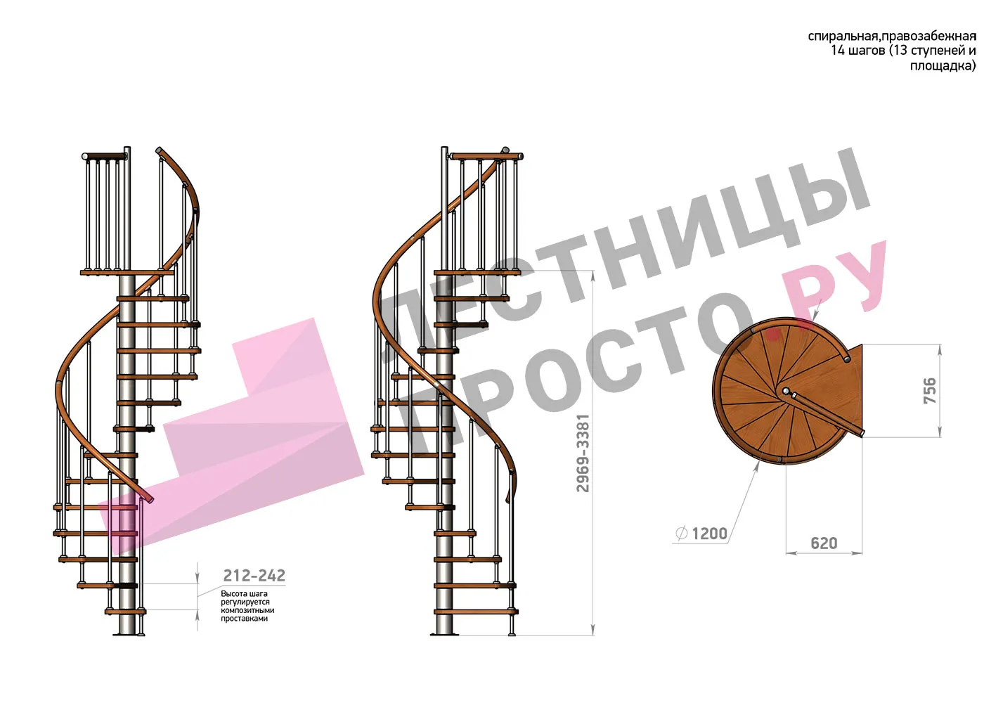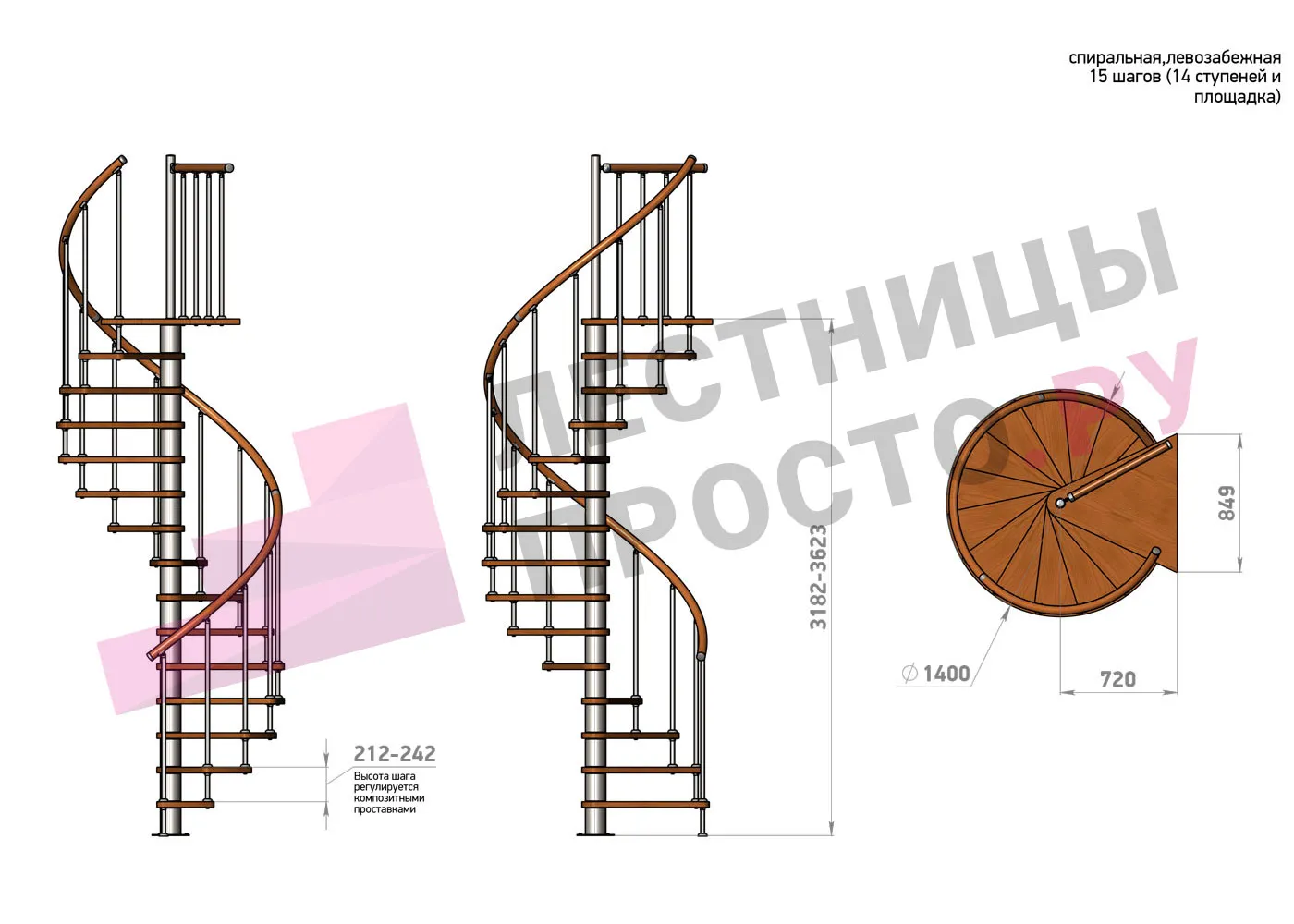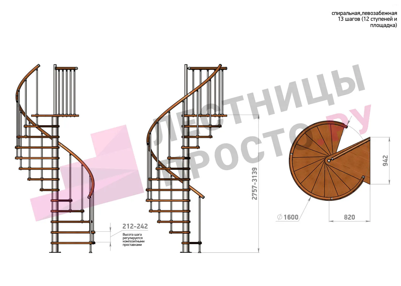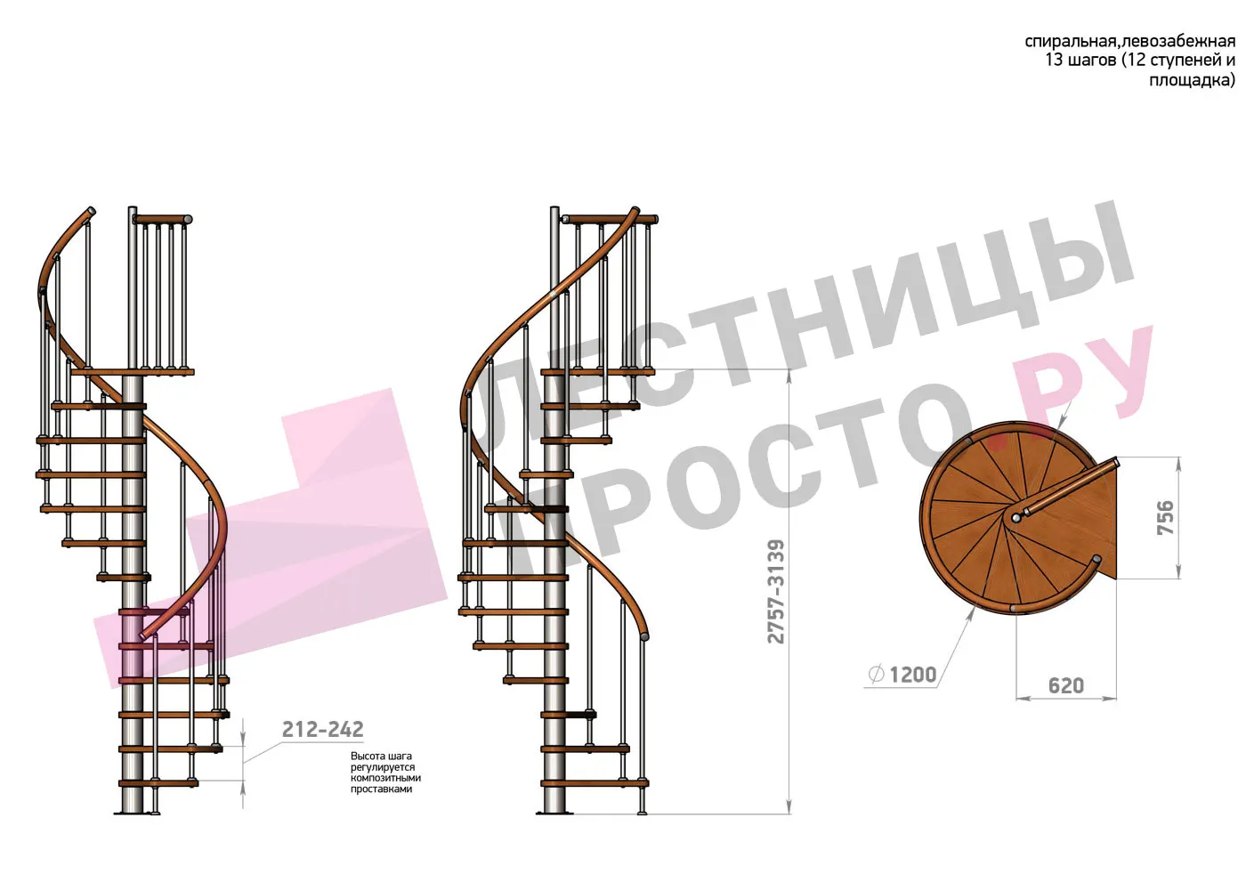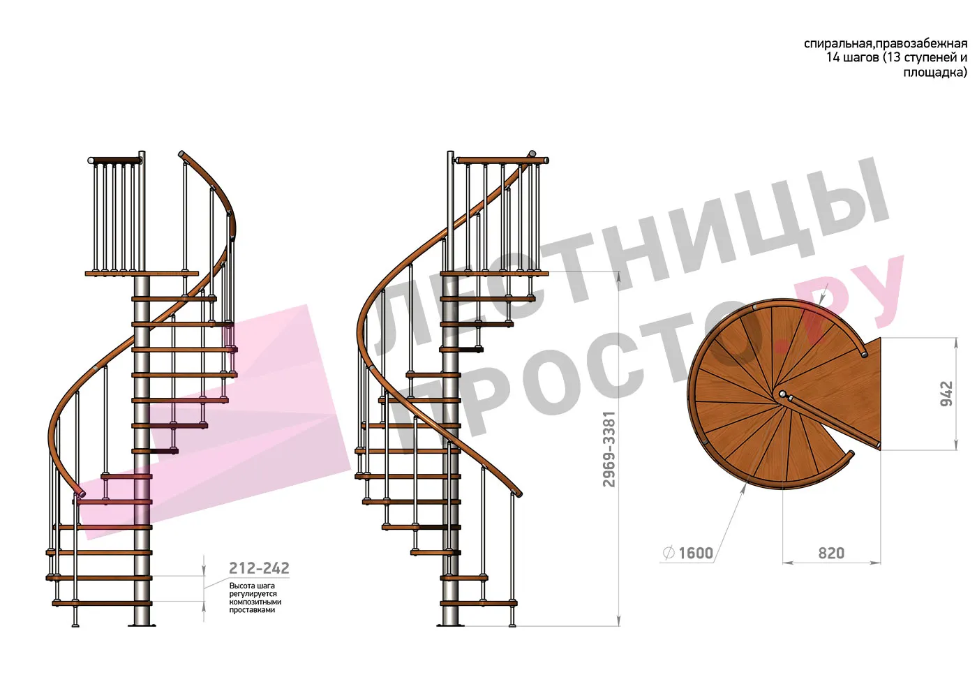 Винтовая лестница Prosto Spiral Black/Высота 3182 - 3623 мм