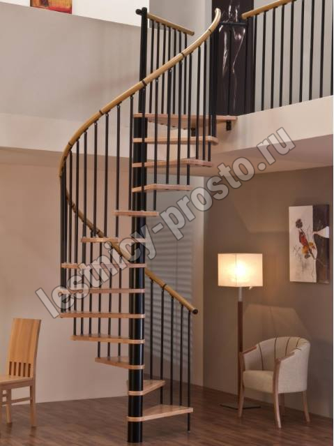 Винтовая лестница SPIRAL WOOD d160 см, чёрная, лакированный бук