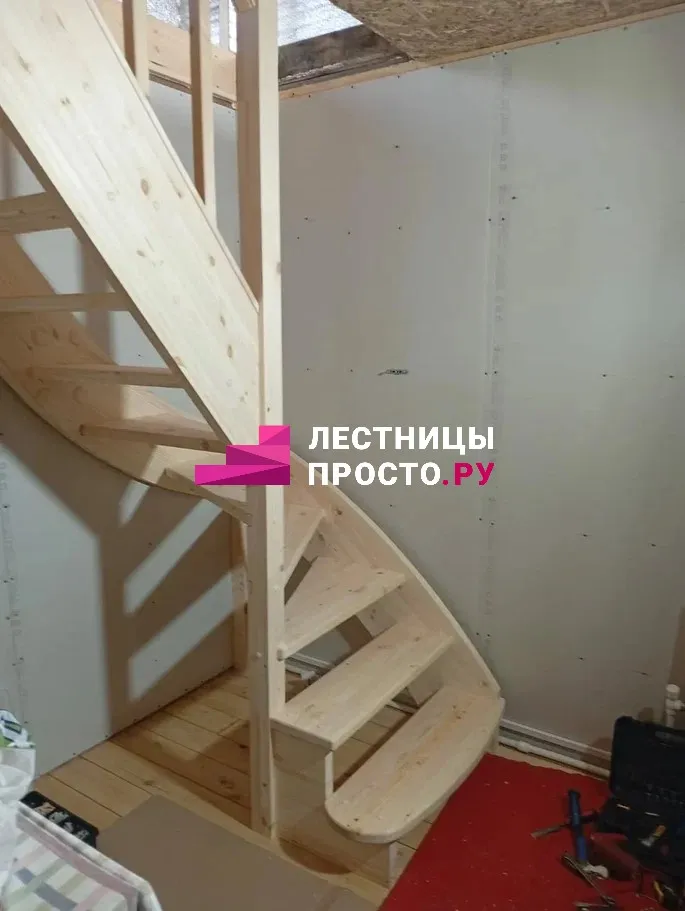 Лестница из сосны с поворотом без покраски