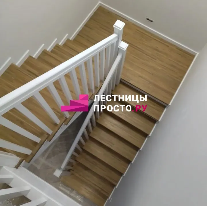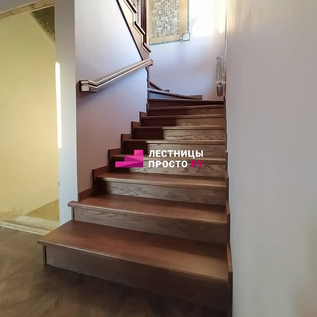 Отделка бетонной лестницы с площадкой в частном доме LP-1-16