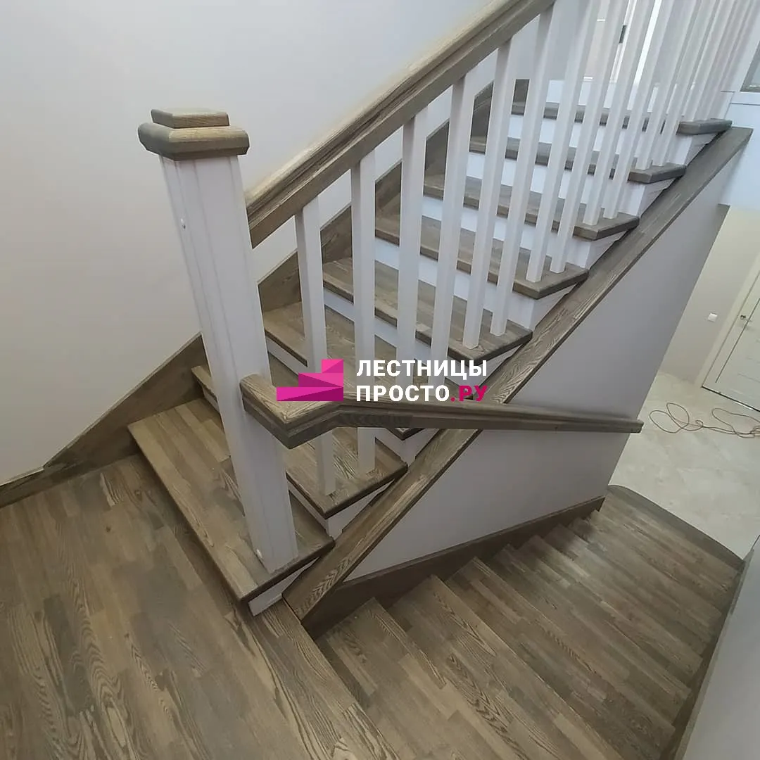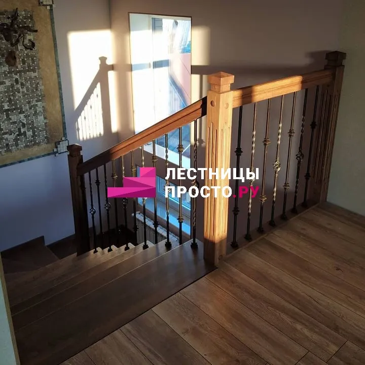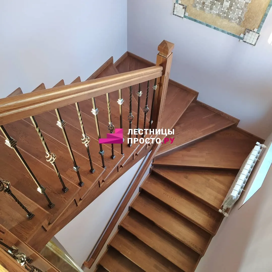 Лестница из ясеня с фигурными балясинами в частном доме по индивидуальному проекту LP-1-46