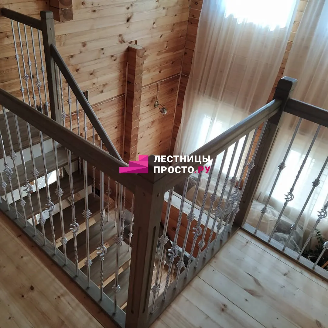 Лестница из ясеня с кованым ограждением по индивидуальному проекту LP-055